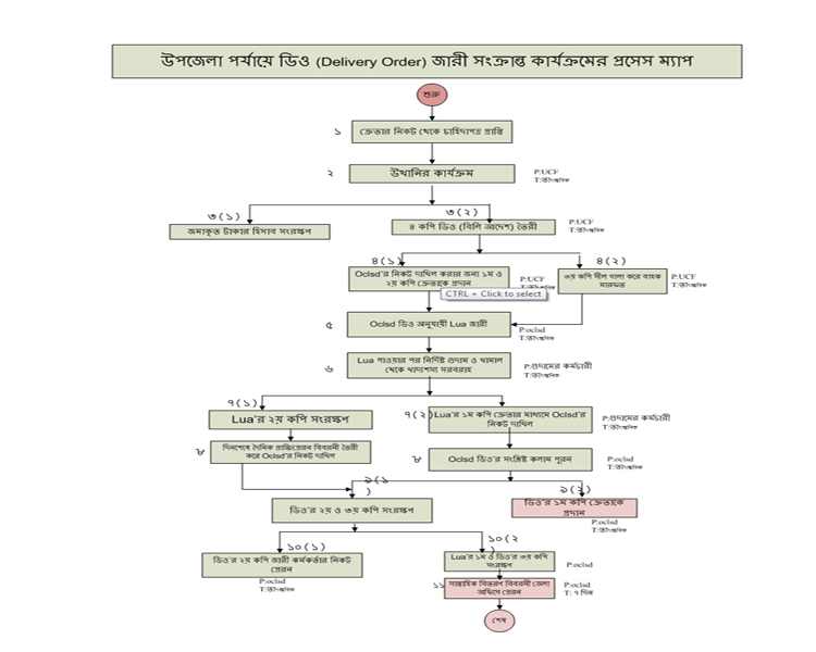 উপজেলা পর্য়ায়ে ডিও জারী সংক্রান্ত কার্য়্যক্রমের প্রসেস ম্যাপ
